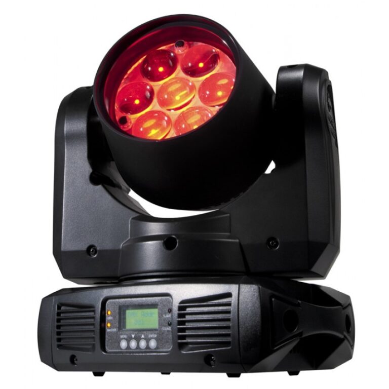 High Output LED Moving Head Wash with motorized zoom | Motorized Zoom: 10 ~ 60-degree beam angle | 3 Operational Modes: Sound Active, DMX Controlled or Show Mode | 14 DMX channels | 64 Built-In Color Macros | 4 Built-In light shows | Electronic Dimming: 0% – 100% | Five Dimmer Curve Modes | Pan/Tilt Inverse Mode for contrasting movement when fixtures are linked together | Fast Pan Tilt Movement | Pan: 540-degree; Tilt: 220-degree | 16-Bit Fine Pan/Tilt control | 4-Button DMX LCD menu | Stepper motors with micro stepping | Includes Omega bracket for truss mounting | 3-pin XLR In/Out | Fan cooled | Electronic Strobe/Pulse effect; random strobe slow to fast | Compatible with American DJ UC3 Series easy-to-use controllers (sold Separately) | IEC AC IN/OUT on rear to daisy chain power | (up to 4 Inno Color Beam Z7’s @ 120V and 8 Inno Color Beam Z7’s @ 230V ) | PWM (Pulse Width Modulation): 1K | Strobe Rate: 1-19HZ | Light Source: 7x 10W RGBW Quad Color (4-IN-1) Osram LEDs | Light Output: 12700 LUX @2M; 3200 LUX @4M (10-degree), 980 LUX @2M; 265 LUX @4M (60-degree beam), 1240 LUX @4M (13 degree beam) | Long Life LED (Rated at approximately 50,000 hrs) | Power Cable Length: 1.5M (IEC) | Multi-voltage Operation: 100-230V, 50Hz/60Hz | Power Consumption: 104W | Dimensions(LxWxH): 10.5” x 6.75” x 13.5”/ 262 x 167 x 340mm | Weight: 17 lbs./7.5 kg.