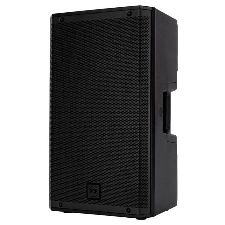 Features | Built-in 6-channel Digital Mixer | Advanced User Interface w/ touch panel and remote control | 1.75″ Compression Driver and 12″ Woofery | Up to 130 dB Sound Pressure Level | 2100W Class-D Bi-Amplification | Dual combo preamp with 48V Power and Mini-jack stereo line input | Bluetooth® stereo audio input, with dual speaker pairing option | True Resistive Waveguide, FiRPHASE, and Bass Motion Control | Specifcations | ACOUSTICAL SPECIFICATIONS | Frequency Response: 50 Hz ÷ 20000 Hz | Max SPL @ 1m: 130 dB | Horizontal coverage angle: 100° | Vertical coverage angle: 60° | TRANSDUCERS | Compression Driver: 1 x 1.0”, 1.75” v.c | Woofer: 12”, 2.5” v.c | INPUT/OUTPUT SECTION | Input signal: bal/unbal | Input connectors: Combo XLR/Jack | Output connectors: XLR | PROCESSOR SECTION | Crossover Frequencies: 1600Hz | Protections: Thermal, RMS | Limiter: Soft Limiter | Controls: Color touch panel, data entry/volume encoder, dedicated App for iOS and Android. | POWER SECTION | Total Power: 2100 W Peak, 1050 W RMS | High frequencies: 700 W Peak, 350 W RMS | Low frequencies: 1400 W Peak, 700 W RMS | Cooling: Convection | Connections: VDE | ELECTRONIC SPECIFICATIONS | Frequency Response: | 20 Hz ÷ 20 Hz | THD+N, 20dB gain, 0dBu out | 0.005% A-Weighted | PROCESSING | Processing Channels: 6 | Signal Processing: 24 Bit | A/D-D/A conversion: 32 Bit @ 48.0 kHz | Dynamic range: 110 | INPUTS | Mic: 2 | Remote Controlled Storable Gain: Yes | Gain Range: 0 dB ÷ 42 dB | Input Noise Level: -114 dBu A-Weighted | Mic Inputs Impedance: 6 kohm | Low Cut: 20 Hz ÷ 400 Hz | Phantom Power +48V: Yes | Mono Line: 2 | Gain Selection: 0 dB ÷ 22 dB | Line Input Impedance: 21 kohm | A/D Dynamic range: 114 dB | Stereo Line: 1 | Gain Selection: 0 dB ÷ 10 dB | Stereo Line Input Impedance (kOhm): 13 kohm | OUTPUTS | Main MIX: 1 | OUTPUTS SPECIFICATIONS | Main Out Impedance: 150 ohm | Main Out Level: 22 dBu | D/A Dynamic Range: 114 dB | COMPRESSORS | RCF Compressors: Compressors on MIC/LINE CH1 & CH2 Inputs. | EQ | Input Channels EQ: 2 Shelving 1 | Description: | 3 Band EQ: High and Low band shelving, MID band peak on IN | 5 Band EQ: 4 Full Parametric, 1 High Shelving and HPF 24 dB/Oct on Amplifier and MAIN output, | INTERNAL EFFECTS | Send Effects: 1 | MASTERING PROCESSORS | Main OUT type: MIX OUT, CROSSOVER OUT with RCF SUBWOOFERS presets, STEREO OUTPUT, CH1 LINK OUT. | | STANDARD COMPLIANCE | Safety agency: CE compliant | | PHYSICAL SPECIFICATIONS | Cabinet/Case Material: PP Composite | Hardware: 1 x M10 top, 1 x M10 each side | Handles: 1 top, 1 each side | Pole mount/Cap: Yes | Grille: Steel | Color: Black | b | Height: 642 mm / 25.28 inches | Width: 370 mm / 14.57 inches | Depth: 363 mm / 14.29 inches | Weight: 19.8 kg / 43.65 lbs